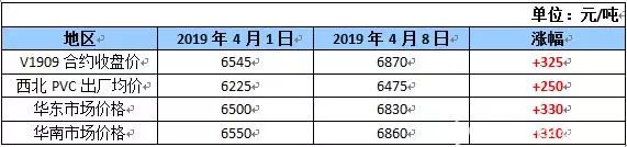 沉寂3個月的PVC,踏入4月后表現(xiàn)可謂突飛猛進(jìn)。尤其在PVC期貨實現(xiàn)移倉換月后,漲價動能得到充分激發(fā),大舉突破震蕩狀態(tài),從4月1日至4月8日,大商所V1909合約收盤價漲幅近5.0%。而PVC生產(chǎn)廠家在庫存低位的情況下看漲情緒較強(qiáng),助推漲價潮在短時間內(nèi)愈演愈烈。
