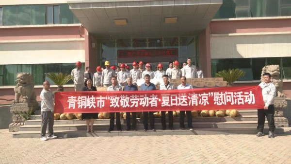 青銅峽市總工會和固原經(jīng)濟開發(fā)區(qū)總工會為集團公司送來西瓜、礦泉水、金絲菊、冰糖等防暑物品,表達對企業(yè)一線員工關心和厚愛。