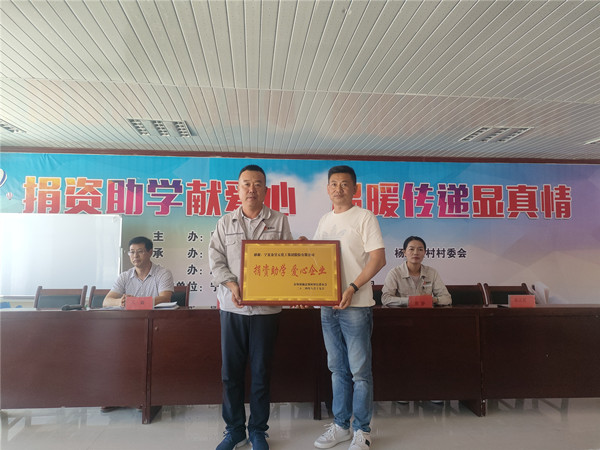 最后,彭堡鎮(zhèn)楊忠堡村黨支部書記童正武為寧夏金昱元化工集團(tuán)股份有限公司頒授了“捐資助學(xué) 愛(ài)心企業(yè)”榮譽(yù)牌。