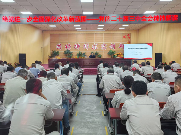 為深入學(xué)習(xí)貫徹黨的二十屆三中全會精神,切實(shí)把思想和行動統(tǒng)一到全會決策部署上,促使黨員干部認(rèn)真領(lǐng)會習(xí)近平總書記關(guān)于全面深化改革新思想、新觀點(diǎn)、新論斷,深刻把握改革主題、重大原則和舉措,6月6日,寧夏金昱元化工集團(tuán)股份有限公司黨委組織開展“繪就進(jìn)一步全面深化改革新藍(lán)圖——黨的二十屆三中全會精神解讀”主題黨課學(xué)習(xí)。本次黨課由中共吳忠市委黨校鄭自明教授主講。