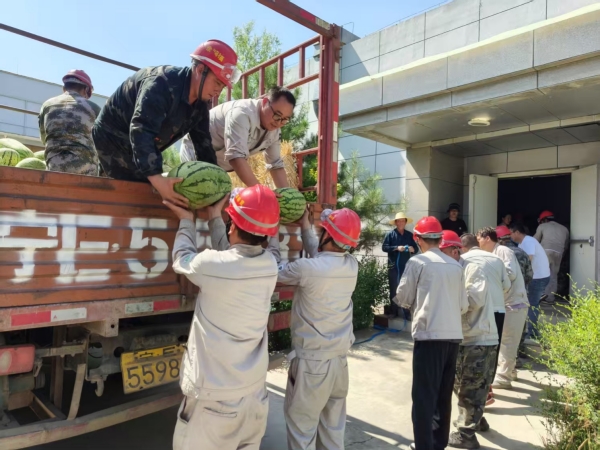 活動(dòng)期間,固原基地工會(huì)深入現(xiàn)場,將防暑西瓜分發(fā)到職工手中,為身處高溫工作環(huán)境的職工送去陣陣清涼。同時(shí)對(duì)奮戰(zhàn)在一線的職工致以親切問候,并囑咐大家做好高溫防護(hù),鼓勵(lì)大家在繁忙的工作中積極發(fā)揮勞模精神、工匠精神,為高溫季節(jié)安全生產(chǎn)保駕護(hù)航。